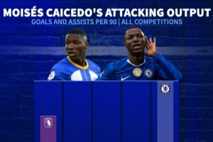 持续进化,凯塞多英超生涯每90分钟参与进球数逐年递增