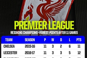 上一篇: 利物浦本赛季前11轮18分,英超历史卫冕冠军同期第四少
