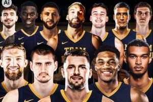 全欧洲球员阵容:东契奇、字母哥、约基奇、文班亚马、小萨博尼斯、戈贝尔、小瓦格纳、努尔基奇、博格丹、施罗德、申京、马尔卡宁。