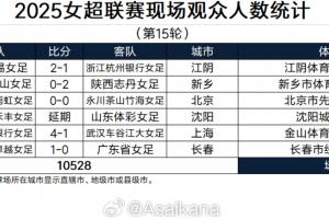 2025女超联赛现场观众人数统计(第15轮)