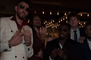 体育资讯8月12日讯 据雷霆媒体SkyedOKC报道,切特-霍姆格伦参加队友卡鲁索婚礼上的奇葩着装遭全网群嘲,这位雷霆新星穿着明显不太得体。