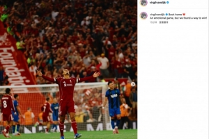 赛后,范迪克更新社媒晒照庆祝球队胜利,并配文写道: