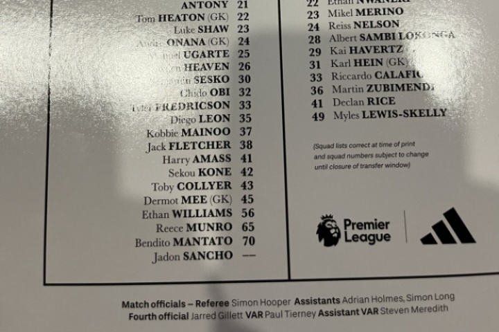 值得注意的是,在曼联的名单中,出现了没有号码的桑乔。据此前报道,曼联已经接受了罗马2000万欧元的报价,同意出售桑乔。