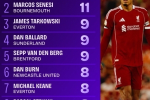 1、范迪克(利物浦):17次