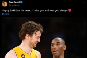 体育资讯8月24日讯 今天是科比的生日,加索尔更推为科比送上了生日祝福。