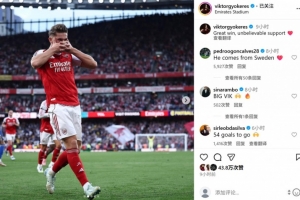 本场比赛阿森纳新援约克雷斯梅开二度,赛后他在个人社媒晒出标志性庆祝动作,配文写道:“漂亮的胜利!球迷们的支持难以置信!”