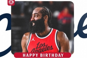 体育资讯8月27日讯 今天是快船球星哈登的36岁生日,球队官推发文祝他生日快乐。