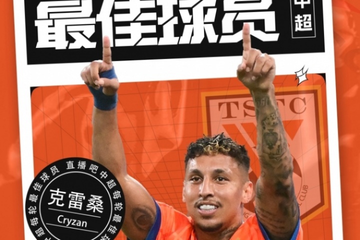 【体育资讯】中超第二轮最佳球员:克雷桑毫无悬念当选,评分9.9!