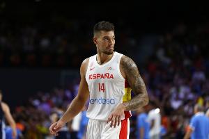 上半场比赛,西班牙男篮进攻端全靠威利-埃尔南戈麦斯撑起进攻,他出战15分钟,6中4,罚球1中0,拿到全队最高的8分,外加3篮板1助攻,正负值-5。
