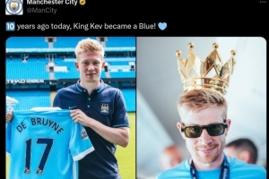 体育资讯8月30日讯 在十年前的今天,德布劳内与曼城签约,开启了辉煌的曼城生涯,曼城官推也晒出球员初到曼城时的青涩照片,配文写道:“10年前的今天,国王凯文成为蓝月军团一员。”