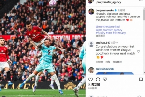 在社交媒体上,舍什科写道:赛季首胜鼓舞人心,我们有来自球迷的鼎力支持。我们将在老特拉福德再接再厉!