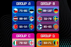 体育资讯08月31日讯 男篮欧锦赛当地时间8月30日的12场小组赛全部结束,详细赛果如下: