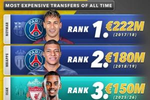 足坛历史最贵TOP10:内姆前二,伊萨克跃居第三!利物浦2人上榜