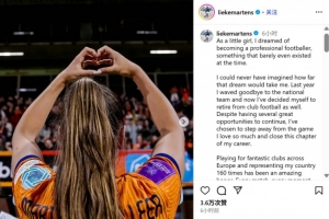 体育资讯9月2日讯 荷兰女足的32岁前锋列克-马滕斯通过社媒发文,宣布退役。她曾效力过巴萨和巴黎在内的多家欧洲俱乐部,并随荷兰女足获得2017年欧洲杯冠军和2019世界杯亚军,她也当选为当年的世界足球小姐。
