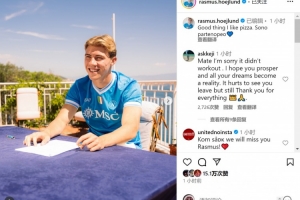 体育资讯9月2日讯 霍伊伦更新社媒动态,晒出身穿那不勒斯球衣的照片。