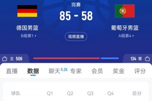 体育资讯9月6日讯 男篮欧锦赛1/8决赛,葡萄牙男篮58-85不敌德国男篮。
