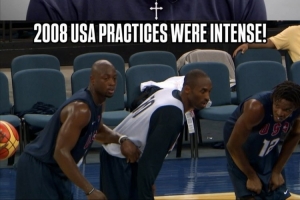 “知道我们要和谁对抗吗?我们来训练的时候,勒布朗、梅罗、科比在一队,我们在想‘啥玩意?你们居然在一个队?好吧,那就来拼一下子吧’,我、德隆、保罗在一队,我们真刀真枪地干上了,懂我意思吧?我们全力以赴对抗彼此,但心里都清楚目标是什么,我们始终互相支持——但凡你听说顶尖球队集结,总会听到关于训练的故事。兄弟,真正的硬仗在训练里!正赛反而轻松,因为想想我们的对手都是谁。”
