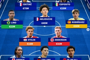体育资讯9月10日讯 德转盘点了在本次国际比赛日迎来自己国家队首秀的11人阵容,其中埃基蒂克领衔,以下为具体阵容:
