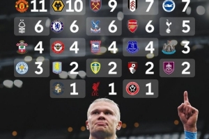 哈兰德英超参与进球分布: