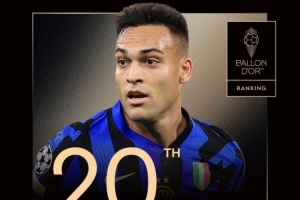 体育资讯9月23日讯 2025年金球奖排名陆续公布,国米前锋劳塔罗第20,这也是其第四次获得提名。
