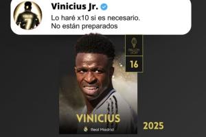 西班牙媒体《世界体育报》晒出维尼修斯在去年金球奖颁奖典礼后的言论:如果有必要我会付出10倍努力,他们还没准备好。