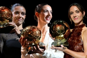 金球奖官方晒出邦马蒂的海报,祝贺她连续3年斩获女足金球奖。