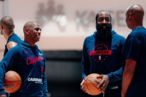 体育资讯10月1日讯 今天,快船官方晒出了球队训练营首日的照片。其中,哈登和保罗同框亮相。