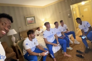 赛前,维尼修斯在社交媒体晒出球队一起打游戏的照片,照片中迪亚斯、赫伊森等人在内。并配文:我的团队♥️