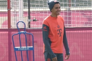 周二出现在训练场时,穆西亚拉笑容格外灿烂,看得出来他已经迫不及待想要重返球场了。