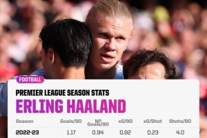 上一篇: 哈兰德本赛季每90分钟射门4.4次、进1.36球,均创英超生涯新高