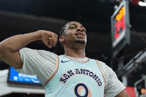 体育资讯10月31日讯 马刺今日107-101击败热火,赛后,本场贡献11分3板1助攻的马刺球员凯尔登-约翰逊接受媒体采访。